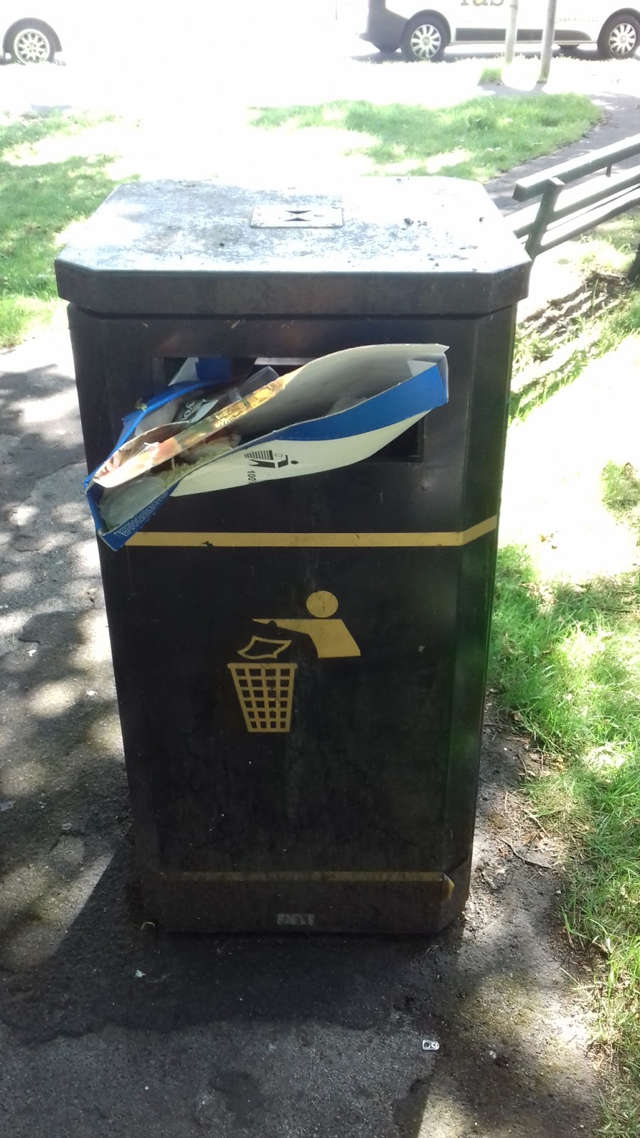 The picture above - taken yesterday - illustrates how this smaller bin struggles to cope with fast food takeway boxes.